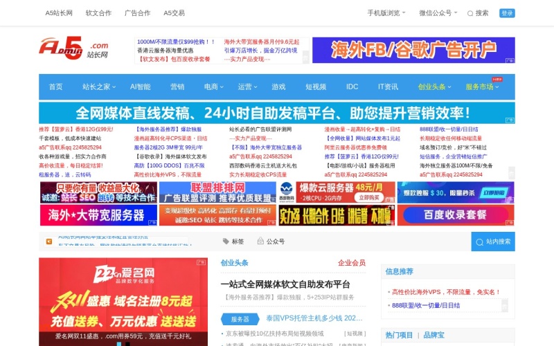 A5站长网是中国成立较早、影响力较大的专注于互联网站长、创业者及网络营销从业者的综合性服务平台。自成立以来,它一直是广大站长获取行业资讯、学习运营技巧、进行资源交易和行业交流的重要枢纽。该网站的核心定位是“站长必看的网站-站长信息和服务中心”。