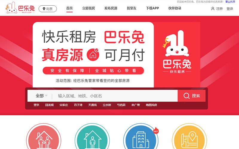 巴乐兔租房平台,于2014年底正式进入互联网租房领域,在保证真房源和价格信息透明的同时,重新定义行业产品和服务标准,将原本鱼龙混杂、乱象丛生的租房行业用租客第一的价值观和移动互联技术进行平台化重构。在为租客创造价值的同时,也为房东带来效益。从虚假房源信息到海量真房源,从租金押一付三到房租可月付,从欺诈式成交到真诚小哥带看,从租后纠纷损失到租后全程保障,巴乐兔正在变革整个租房生态!