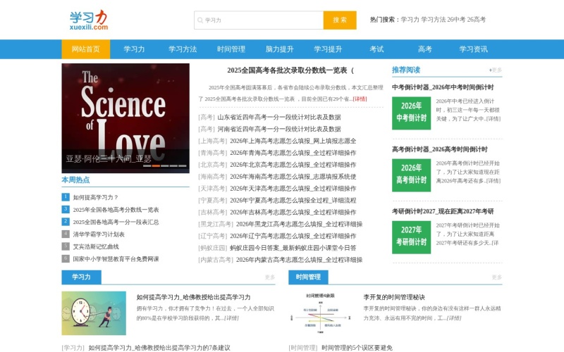 学习力是一个围绕高考为核心,专注于提高学习能力的网站。站内主要内容有: