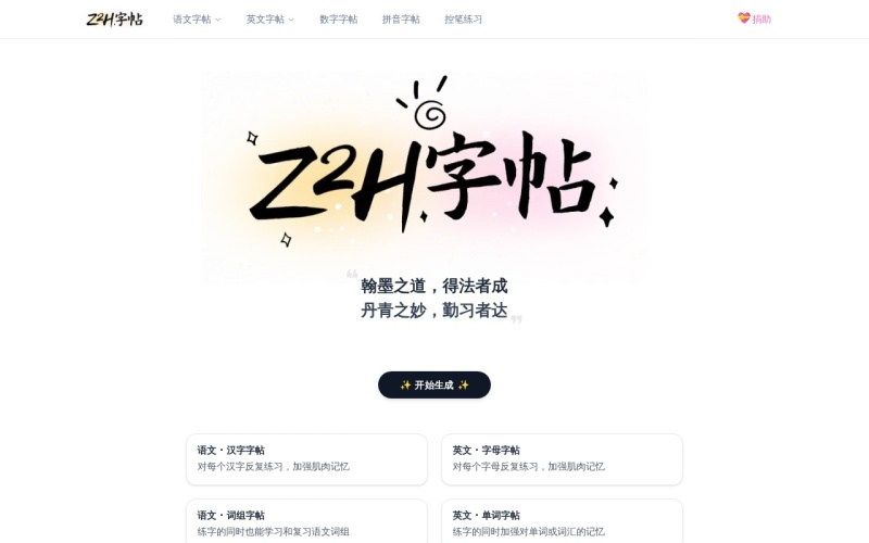 Z2H字帖生成器是一个实用且多功能的在线工具,适合各年龄段的用户使用,无论是初学者还是书法爱好者都能从中受益。