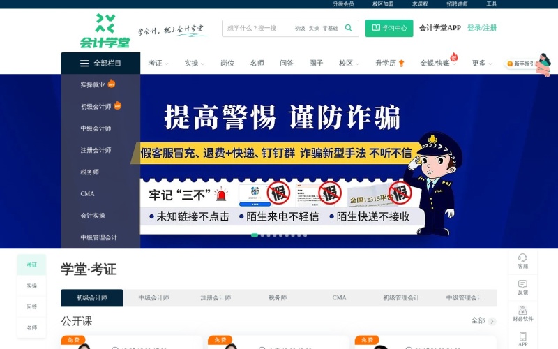 会计学堂学习平台,创立于2014年,致力于为广大会计从业人员提供高质量的会计实操、税务实操、CMA、CPA、中级会计、初级会计等各类培训,位于深圳南山科技园,是一家以技术和产品驱动的创新性教育培训机构,在线学员超过300万人次。